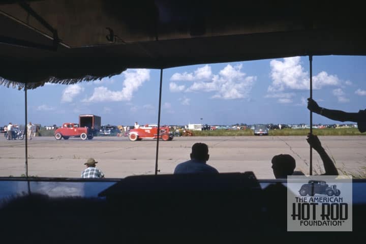 The next two shots are first time scans of images that we have determined we were taken at the Edna, Kansas Regionals back in 1954 during a stop of the N.H.R.A. Safety Safari. What’s great about DCC_251 is we get a totally unique view of two “Deuces” trying to wear out their rear tires in no time flat. N.H.R.A. documents have gotta be out there someplace to help us ID these rides.
