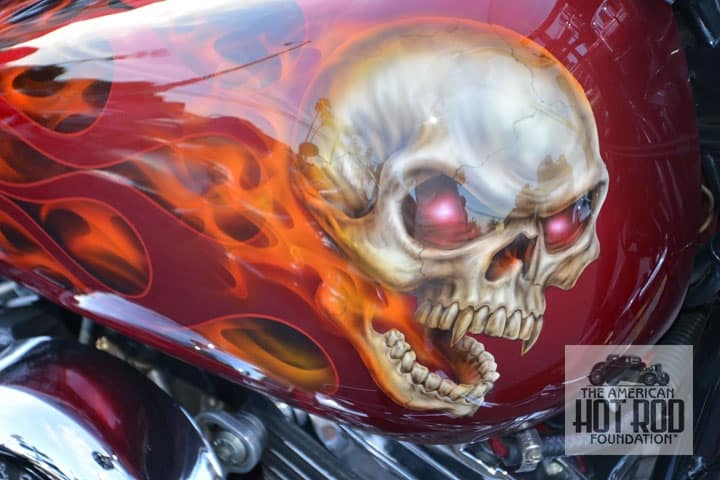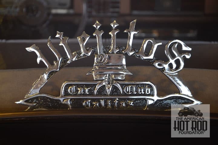 For on Norwalk on Wednesday night to check out “Cruise Night” did the trick. Lowriders are unique unto themselves and quite a few showed at Bob’s. We couldn’t resist snapping this Viejitos club plaque through the rear window of a slammed ‘39 Chevy Master Deluxe (JMC_4780). A little digging revealed that the club was established in Lynwood, California back in 1985. The plaques are the ultimate in folk art and a rough translation of the name means “Old Man”. The Club has over 30 Chapters worldwide so is a serious deal. We found there is going to be a big show for the low and slow “Bombs” in a month or so that just might have to check out.