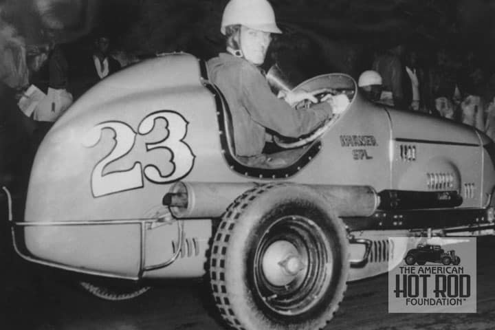 BHC_273 shows Johnny Parsons in Bill Warner’s Ford V8-60 powered rail job midget. We think it was shot at Balboa Stadium in ’41.