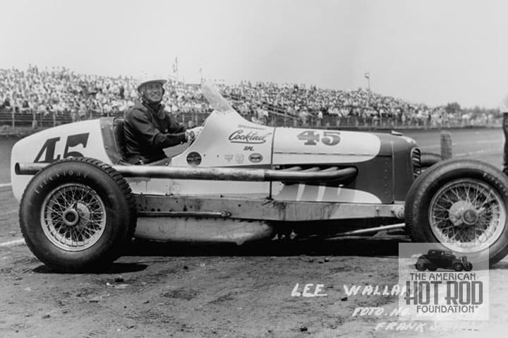 For our next act and a change of venue, here’s what you could call an early custom that was snapped at the lakes (HEY_010). It’s Tommy Lee’s car at Muroc in 1940 minus its fenders. The Offy powered car showed up three times that year with a best speed of 135.95 mph at the October 6th meet.