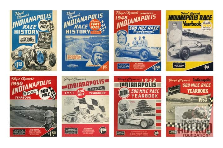 A former Motorcycle racer and dealer by the name of Floyd Clymer turned to publishing right after the end of WWII. We’ve gathered up eight of his soft-cover books that are a treasure trove of information on the Greatest Spectacle in Racing for you to look at (JMC_4782). During those eight years covering 1946 to 1953 seven drivers got their faces added to the Borg-Warner Trophy for winning the race. Their names were George Robson in ‘46, Mauri Rose in ‘47 and ‘48, Bill Holland in ‘49, Johnny Parsons in ‘50, Lee Wallard in ‘51, Troy Ruttman in ‘52 and Bill Vukovich in 1953.