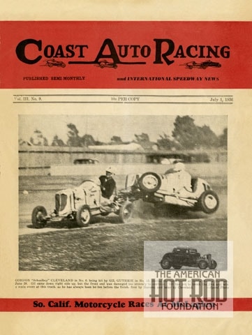 After the breakfast, it was head over to the bookstore to hunt for anything new or old that we couldn’t live without. Returning empty handed for a change it was doing some scanning before heading out again for a local Saturday Night car show. A slightly used copy of the July 1, 1936 issue of Coast Auto Racing got scanned and cleaned up for you (JMC_5039). I picked this cover for you not so much for the great shot of Gordon Cleveland and Gil Guthrie having a little contact, or the content that covered everything that had a motor in it, but because of the location, a running track located in what we now call the Peoples Republic of Santa Monica, California. It’s hard to believe that a city that gave us the likes of the Low Flyers, the shops of Stu Hilborn, Jack Engle and the Granatelli’s, and America’s First Formula 1 World Champion, Phil Hill has degenerated into what it has today, anti anything except what is GREEN. Pretty sad!