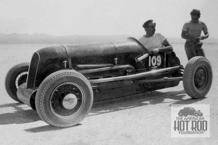 We were asked the question was this the actual car that Teddy Tetzlaff was timed in at 142.85 mph back on August 11, 1914? To make sure we didn’t screw up we checked out the Blitzen Bible written by Karl Ludvigsen back in 2006 (JMC_5053). The answer is no, it’s not the same car, darn it, but the good news is the Benz in the above shot is supposed to make an appearance at the salt to Celebrate the Century of Speed. I can’t wait to hear it rumble.