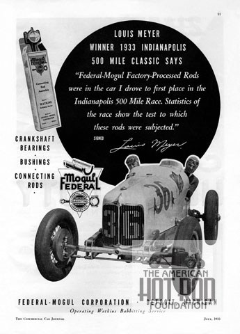 We are not done yet. In the check out strange old magazine department we ran across some old stuff (JMC_5055). This Federal-Mogul Corporation ad showed up in the July 1933 issue of Commercial Car Journal that dealt mainly with Trucks and parts for them. We’re so used to thinking modern insert bearings that we got a reality check when we realized that the ‘33 Indy winner shown with Louis Meyer up ran his exotic Miller straight-8 on babbitt inserts.