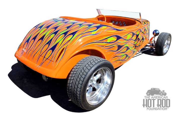 After the old school, ten or so cars away we ran into our next interesting ride (JMC_5168). It’s new school with donut tires and an over the top flame job and tail light that almost disappear. One wonders what we’ll say about it in half a century.
