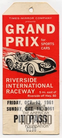 Since we always like to through you curves how about our next image (JMC_027). We see a Pit Pass from the Times Mirror Grand Prix for Sports Cars held at Riverside International Raceway in October 1961. Not the low ticket number. This event was part of the USAC Road Racing championship and the stub shows ’60 race winner Bill Krause in the Maserati of California Tipo 61 #2469. The ’61 race was won by Jack Brabham driving a Climax engined T61 Cooper. Our twist this week is the driver, Mr. Krause. Most of the info out there indicate Bill started driving sports cars is cars its cars in 1956 but the AHRF knows better. We have Bill racing TQ midgets as early as 1953 sponsored by his dad’s Machine shop (His dad, Arnold Krause and his brother were involved with Midget race cars starting in the ’30s and had a 4WD car banned because it won so much). Better yet Bill would go on to open a Honda Dealership in Inglewood in the early ’60s and become very successful with it.