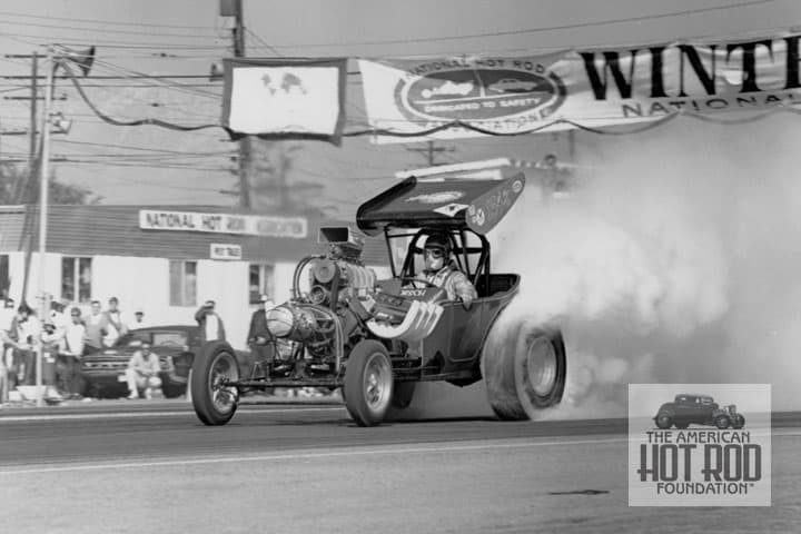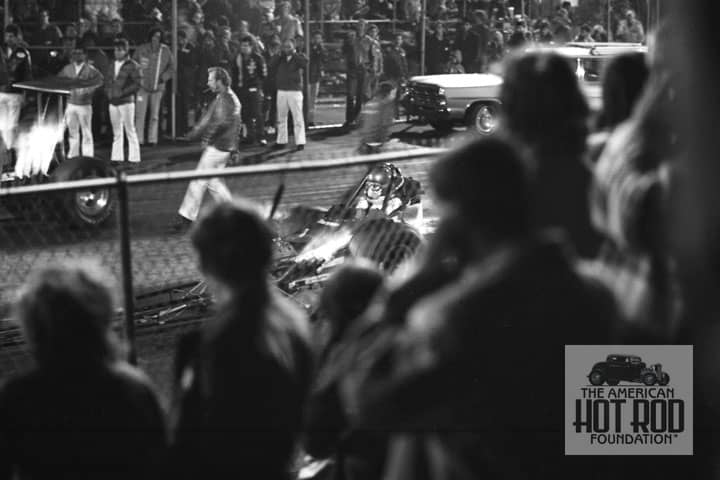 Dragsters making noise and shooting flames is what it’s all about so here’s another shot from Lions back in ‘69 from the grandstand. There’s nothing like the old days when you could stand about 10 feet from the starting line and watch your hero’s at work (JMC_127). Better yet, we even know the starter seen in this shot with his cigar in his mouth, even today he’s still called “Weed”.