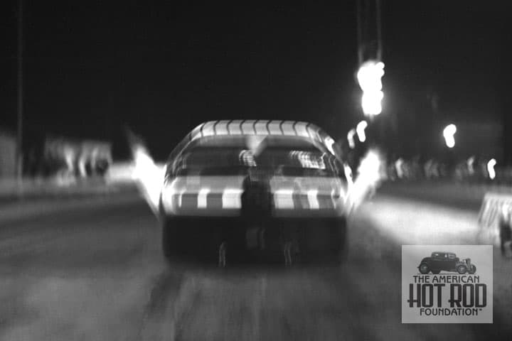 Dave had brought up Gene Snow’s name so on Wednesday we went trolling in our archives to find a shot of the Snowman in action. It didn’t take long to find him accelerating hard and wheeling it off the line at Lions back in January 1972 shooting flames from his Dodge Charger Funnycar (JMC_142).