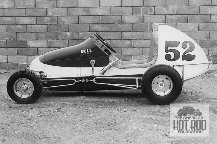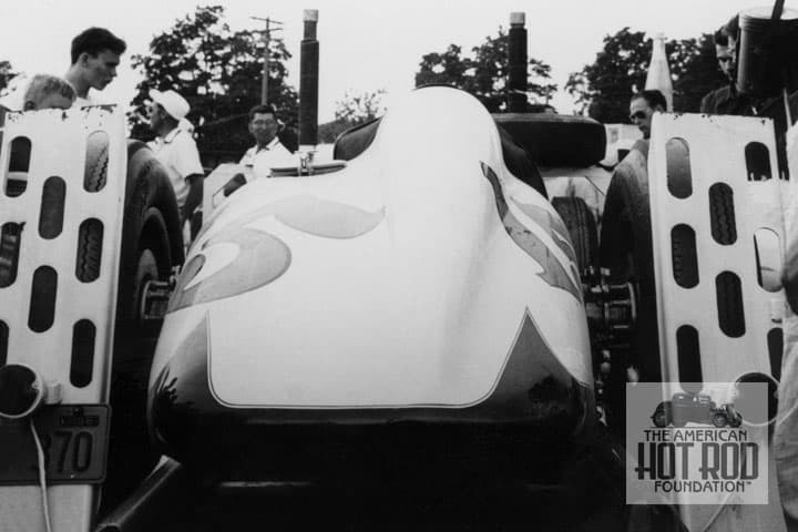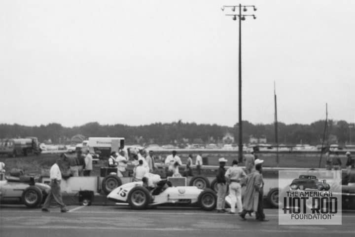 We dug out one of our other shots of the car from the Rex Burnett Collection and put an eagle eye on it (RBC_076) and the Speedway News shot. It’s a Richter built car but not the same one in our shot (different upholstery, steering, brake shock mounts, etc). Word has it that maybe three were built.