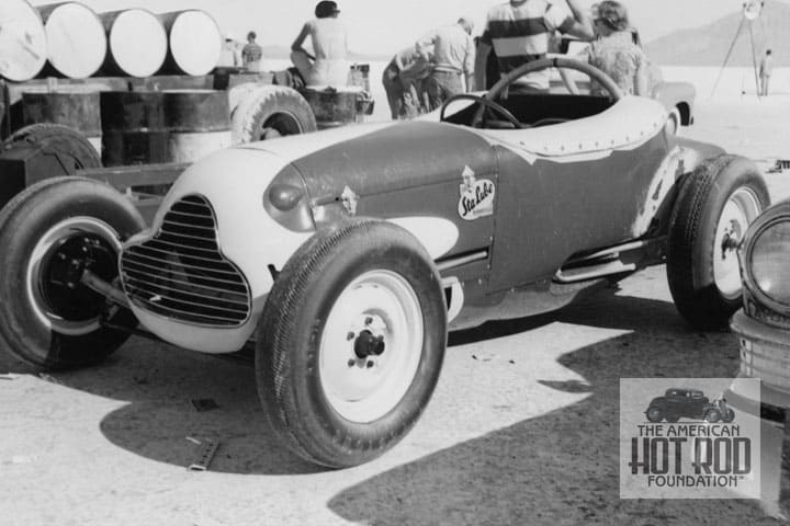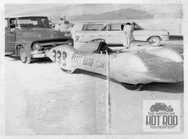 After doing B-ville stuff for awhile simple questions can turn into a real nightmare, especially in the case of cars that run for many years. The car referred to as the Immerso car isn’t really the Immerso car as it first showed at the salt in 1953 as Chet Herbert’s Beast IV. The original car was slapped together at George Barris’s shop with the help of Joco Johnson, Art Chrisman, and others. Before Ermie got it the body had been modified a few times, had multiple chassis and was run as 2WD and 4WD. After Ermie it went through even more owners and changes, ran into the ’90s and is hiding out in Colorado deciding what iteration it wants to be restored back to.