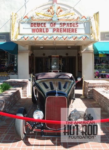 Earlier today (Sunday) a little road trip up to Filmore was in the cards. To be more specific, the movie Deuce of Spades was having its World Premiere (JMC_1813). If you like Hot Rods you’ll love this movie. I don’t want to spoil it by giving you to many details but if you ever street raced, chased after a girl whose parents hated rodders (you) or wanted to know the dirty little secrets of your ride’s many lives ya gotta see this movie. A lot of scenes were shot in and around the town so it was only fitting to have a car show as a prelim to the screenings. The actors and actresses and many of the cars in the film were there for your talking and viewing pleasure. It doesn’t get any better than that.