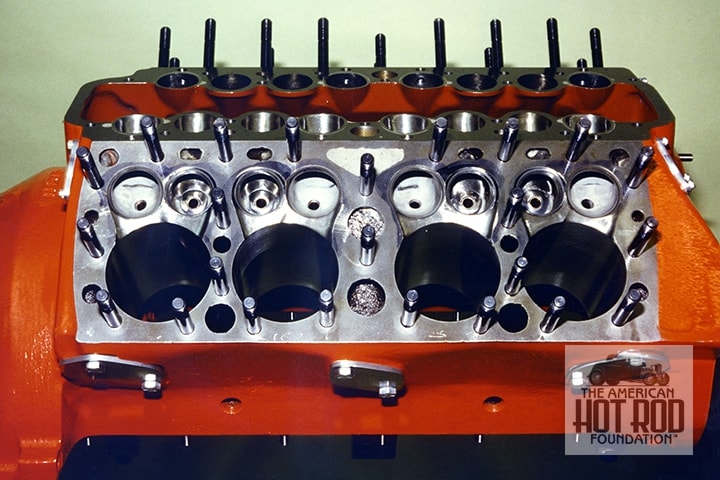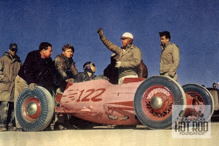 One of the reasons for the shakeup was what was done to the motor. Here’s a good look inside the Landy built flatmotor from Ron Main’s roadster (RON_009). Note the original intake ports are now the exhaust and tubes have been added to make new intake runners. Naturally, a new cam was in order to make this all work. More than a couple of dozen motors expired over the years getting the setup to work right before a blown version of the engine was dropped into his streamliner and made history when it became the first flathead powered ride to set a record over 300 mph. Rod did it in August 2003 with a speed of 302.674 mph. The record still stands as of 2014.