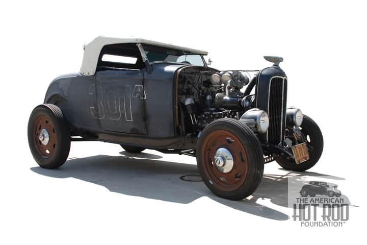 Across from our booth was Mike Nicholas and his Nick’s Garage booth. He’s the promoter of the Hot Rod Hill Climb that takes place in Georgetown, Colorado. He brought his recreation of the famous Chevy-6 powered Wayne T-33 Special seen in our next shot (JMC_5456). After re-discovering the original Hill Climb that was featured in the April ‘55 issue of Hot Rod he tracked down the original War engine and body from the car for the build. As luck would have it he also found the T-33’s original builder and driver in the form of one Cal Kennedy. Cal was at the show and we had a great chat. Mike told me that the Chevy in the caryne 12-Port headed engine and body from the car for the build. As luck would have it he also found the T-33’s original builder and driver in the form of one Cal Kennedy. Cal was at the show and we had a great chat. Mike told me that the Chevy in the car and rust was some excellent period craftsmanship. To the T’s left is Mike’s cool Deuce roadster that’s fitted with one of Henry’s V8 flat-motor.