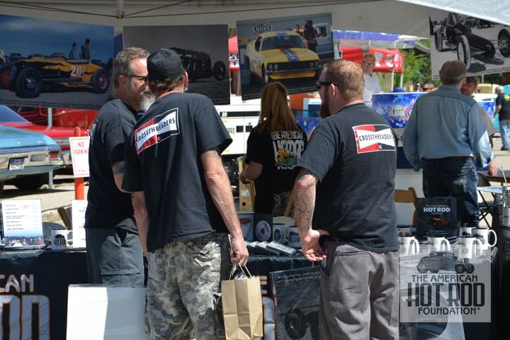 Next up is the AHRF booth still being set up and some customers that have already handed over some greenbacks for some mugs and T-shirts (JMC_5458). They were members of the Crossthreaders Car Club. Not how cool their repurposed Champion Spark Plug logo looks.