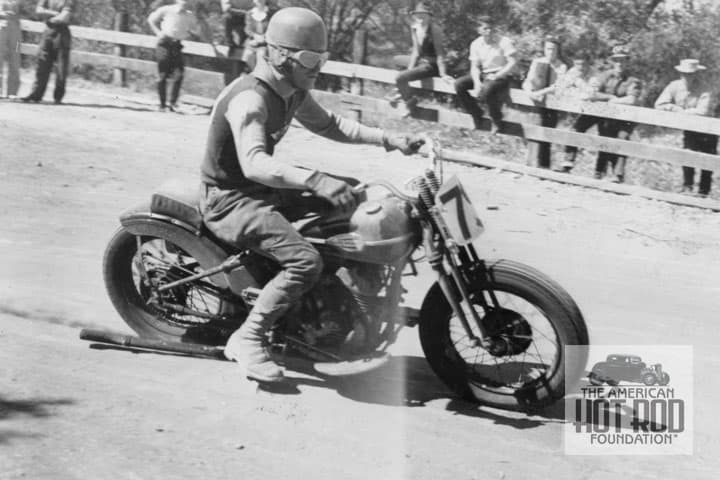 First up is a shot with the rider identified as Sam Arena (HAI_031). We asked some of our rider friends if they had ever heard of a Sam, we struck out so off it was to do a little research. We hit paydirt in the guise of the AMA Motorcycle Hall of Fame where we found that Sam, who was born in 1912, was one “Bad” motorcycle rider having won the 1938 Pacific Coast Championship race at Oakland Speedway. He also ran Speedway bikes. After WWII he went on to win four AMA National Hillclimb Championships from ’46 to ’50. In the shot note how close the exhaust pipe is to the ground as Sam slides through a turn.