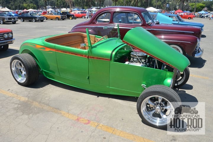 Our next shot is another sleeper (JMC_5478). When you first walk by it you say to yourself, just another pretty green roadster. When you study it a minute you start scratching your head and say hey, this us minute you start to be a Model A Coupe, or was it. Lots of nice detail work.