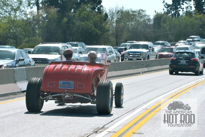 On the way home I heard this rumbling sound in the Diamond lane next to me. Next thing I know this slick little orange Model A whips by me bouncing all over the lane (JMC_5483). That’s all part of the charm of riding in a buckboard with a big motor under the hood on a sunny day. Viva La Hot Rods.