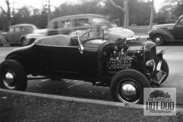 While on the Gow kick let’s fast forward to the late ’40s as we check out this ’27 body on a model A chassis stuffed with a 24 studder (MBB_505). We’ve dated the shot to ’48 and with the other shots that were with this one, we bet our shooter was on a side street in Los Angeles near the National Guard Armory on his way to attend the First Hot Rod Expo. We like the rag over the carbs to keep foreign objects from magically being sucked into them while parked.