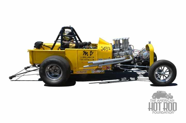 This Fred Larsen image shows the Class D Roadster that was run by the team of Leonheartt-McMullen-Bank at Bonneville Speedweek in 1955. It posted a top speed of 139.53 mph for 7th in class.