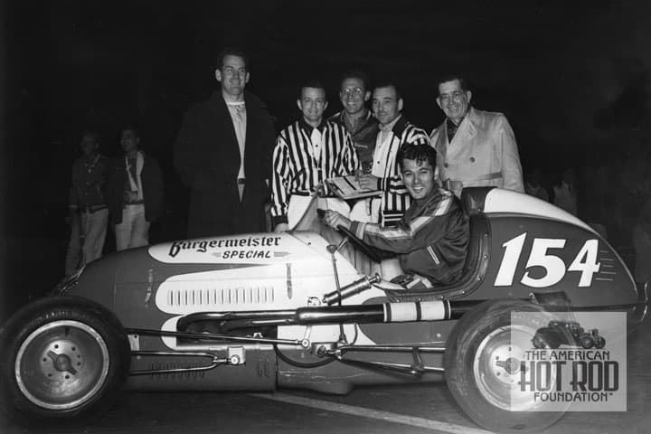 We always try to connect the dots between various automotive activities and our next image (RBC_088) should connect perfectly with the above shot (DBC_879). We see the cover of the First Annual National (Oakland) Roadster Show program. It features the trophy that is still in use over 55 years after this picture was taken. On the left, we see Miss California 1949, Joan Pedersen. On the right, we see that guy seated in the midget shot, Freddie Agabashian. To solidify our connecting to the hot rod world we got the shot from GNRS luminary, Roy Brizio. It can’t get any better than that.