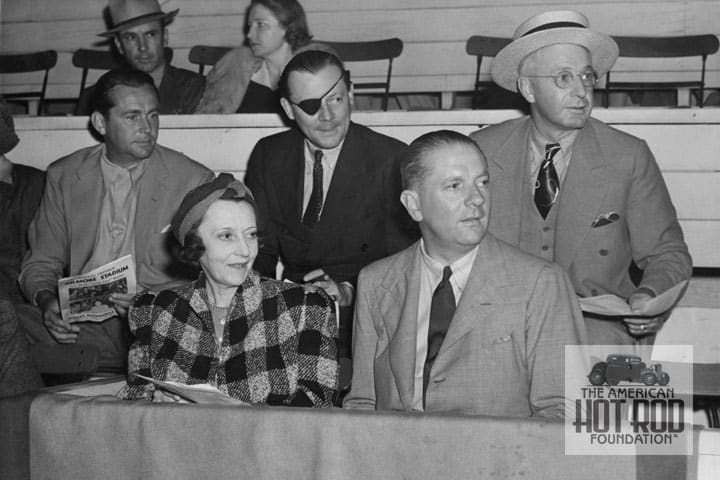 Little known is that both Eyston and Cobb would spend some time in Los Angeles after their Salt Flat adventures. Our next shot from Carroll Photo Service (JHC_891)courtesy of Joe Henning had this caption attached to the back— Luminaries were common at Gilmore during the racing season. In this 1947 photo: Actor Jimmy Dunn, Reid Railton, designer of John Cobb’s land speed record attempt car, Earl B Gilmore stadium owner: (front row) Mrs. Gilmore, John Cobb. Seems our friend Mr. Gilmore was involved with fuel and Oil sponsorship of Mr. Cobb’s ride so it was only natural that they would visit Mr. Gilmore’s little racetrack at Third and Fairfax to take in some Midget Car Racing.