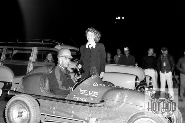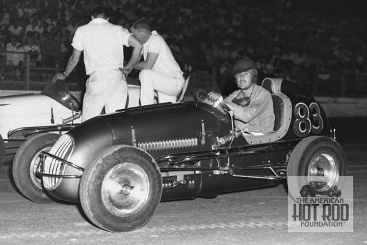 The last picture is rare indeed as you don’t usually see this driver smiling (JHC_1451). After winning the URA Red Circuit Championship in ’45 and ’46, and finishing second in ’47 in his famous Drake powered midget called “Old Ironsides”, our subject in this 1948 shot is seen receiving a trophy for winning yet another race on his way to a third place in the 1948 URA Championship. The ride is his almost new Kurtis that was shortened a tad, had the cowl massaged and also ran a Drake. As for the date of this shot, it could be May 7th or June 9th at Bakersfield, May 9th, July 18, August 8th or October 24th at Fresno, May 15th, June 12th, June 19, July 10th or August 21 at Tulare. Take your pick. Our hero driver was born on December 13, 1918, in Oakland, California and given the name Vaso. This was soon changed to Bill as in Vukovich. Did we mention he also won 15 other midget races in ’48 behind the wheel of the Fred Gerhardt, Mike Casale, and the Kittinger/Stroppe cars?