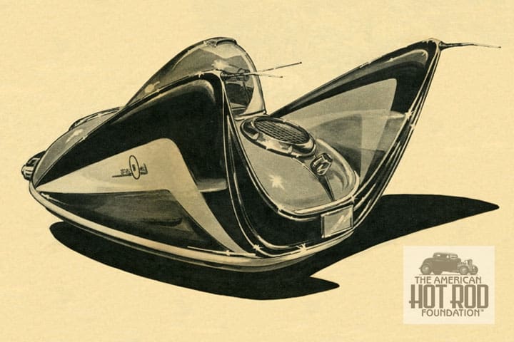 While on the departed list our pal Joe Henning called on Friday to tell us that George Barris had just passed away. Joe and George go way back and this is Joe’s take on George’s Aircar that appeared in the May 1961 issue of Rod & Custom Magazine (JHC_1473).