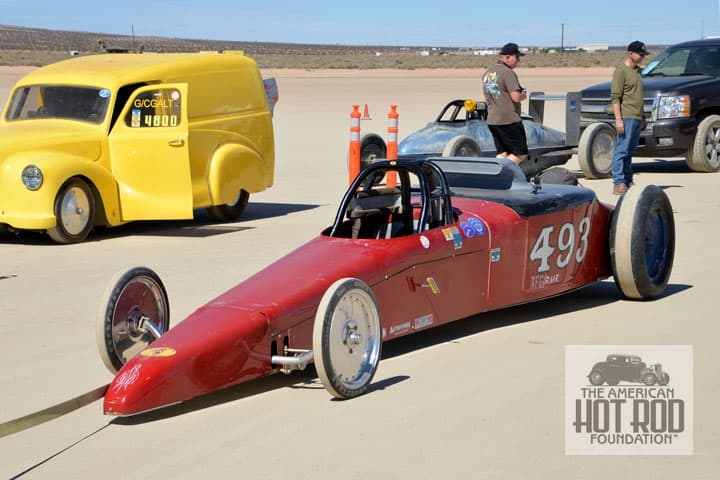 Since Brian’s red is such a good color let’s stick with the tone and check out some other red rides at El Mirage. Zoom Zoom Racing ran this slippery red Class F Blown Gas Lakester at the September 13, 2015, S.C.T.A. lakes meet (JMC_5746). Driver Donnie Hicks, a Rod Riders member, had some problems chasing the 208.541 mph record and had to turn out before clicking the lights. He didn’t receive a speed by got 25 points for his efforts.
