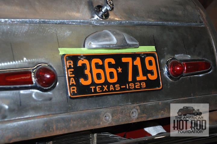 Back in March 2010, we took a little road trip back to Texas to catch up with buddy, and fellow Bonneville racer, Ed Stuck. Being the Lone Star State host he is, it wasn’t long before we were off to visit just a few race and rod shops in the Dallas area. One of the stops was at Brian Bass’ Custom and Hot Rod emporium. Everywhere you looked in his shop there were cool rides in the build process. One that grabbed our attention was the tail of a Deuce Roadster sporting Buick tail lights in the mock-up stages seen in this shot (JMC_5749). Who would of guessed five years later we would run into the finished car and Brian on the beach at The Race of Gentlemen. It really is a small car world.