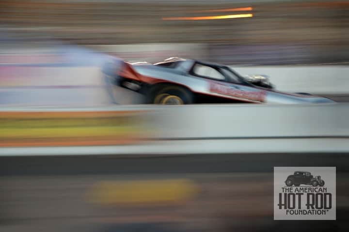 Last shot for the story. Changed the ASA to 4000 as it’s gotten really dark outside. The green line in the shot is actually the go light on the Christmas Tree (JMC_5614. It’s hard to pan a camera at the same speed as the car, especially when it’s accelerating from a dead stop. This time I was lucky and got one right. Can even read the web address on the side of the car and the writing under the flaming headers.