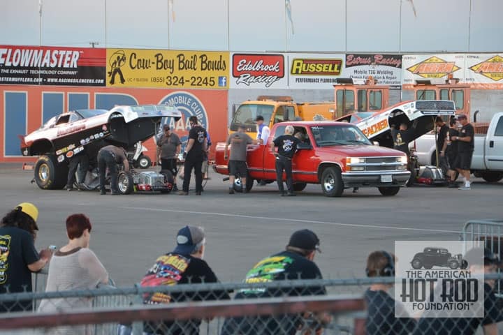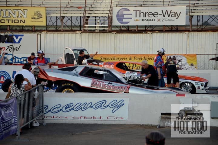 Darkside and Hot 4 Teacher in staging changing over from Alcohol to Nitro (JMC_5612). The cars were still but the guys were moving. About 30 seconds later they were in the beams and then the starter pushed the button. I did the same to the camera but by the time the auto focus focused the cars were gone and missed the shot.