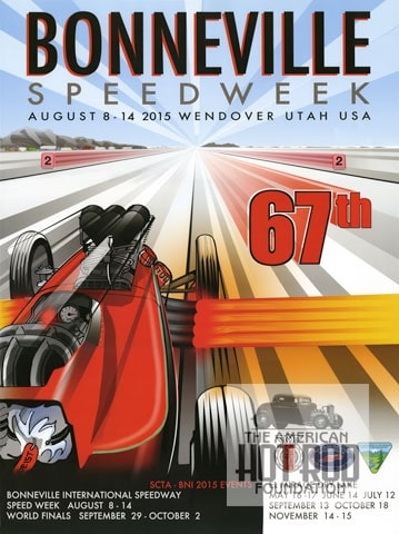 But wait, there’s more. Our silver-tongued Dan approached Larry again this year (2015) and he responded with our next image, the 2015 Bonneville Poster (JMC_2615). This one wasn’t folded but it took six scans and some photoshop to put it together for you. (It’s a secret, so keep it quiet, Larry’s supposed to do the 2016 poster too). We can’t wait.