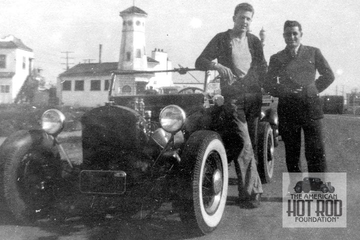 Fast forward to 1943 and we see John and Ed in our next shot (ATH_014). John had a little shop called Mercury Tool and Die about three blocks from where this shot was taken. Ed was home on leave from the Army Air Corp$25. After a few more years of work, it morphed into Ed’s June ’48 Hot Rod magazine cover car that he still owns today.