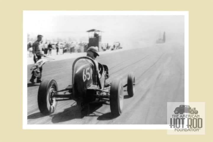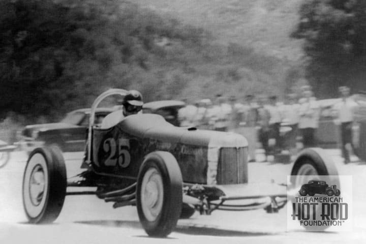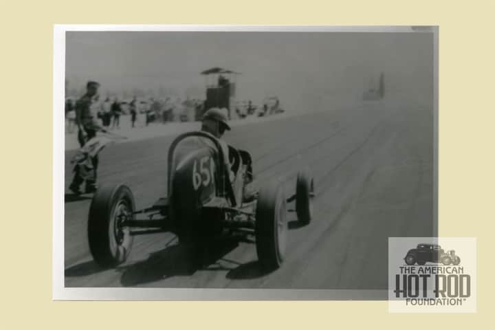 First up is ARN_003 that we can place at Lou Senter and Lou Baney’s Saugus Drag Strip sometime in the early ’50s. Our subject is Mr. Shoe himself, Art Crisman, in the number 25 Icon that was fitted with a flat motor at the time. Did the whitewall slicks and spectator protection.