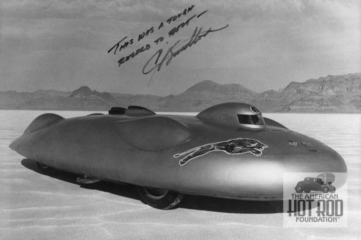 Hanging in Richard’s office was a sad-looking picture frame that was about ready to head for the floor with a thud. Inside it just happens to be our next shot that was taken at Bonneville and shows John Cobb’s pre and post way land speed record holder (RPC_015). The shot by itself is to die for but get a load of the inscription on it— “This was a tough record to break” that was penned by the autographed, Craig Breedlove. We call this way cool and an extra special piece of history. Thanks, Richard.
