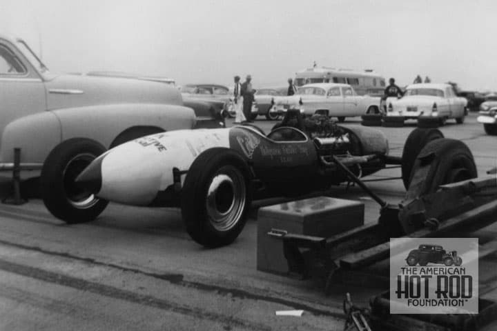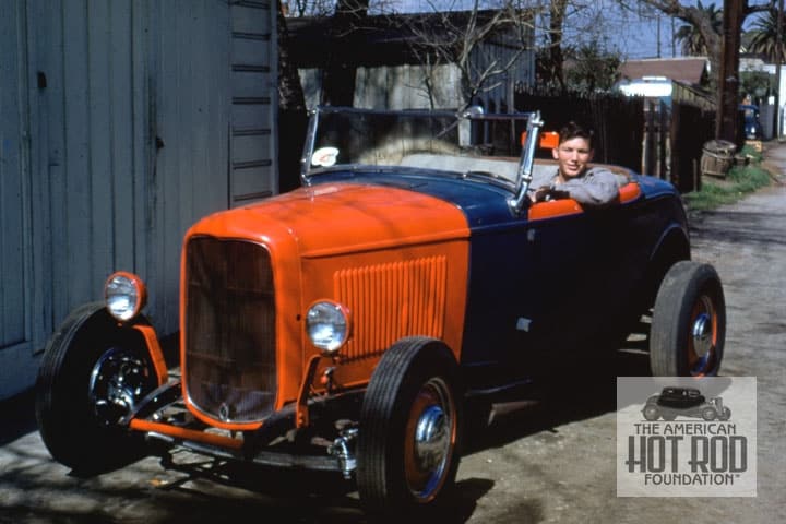 AJC_047 shows how slick a ‘’28-’29 body looks resting on a set of Deuce rails looked as seen in this ‘47 shot. In ‘46 and ’47 this car was raced by the Barber Brothers at the lakes with a Merc flattie in it before Kenny Yenawine took it over in ’48 with the same Jerauld’s Racing Equipment painted on the side. It continued lakes racing and participated in a new-fangled sport soon to be called drag racing.