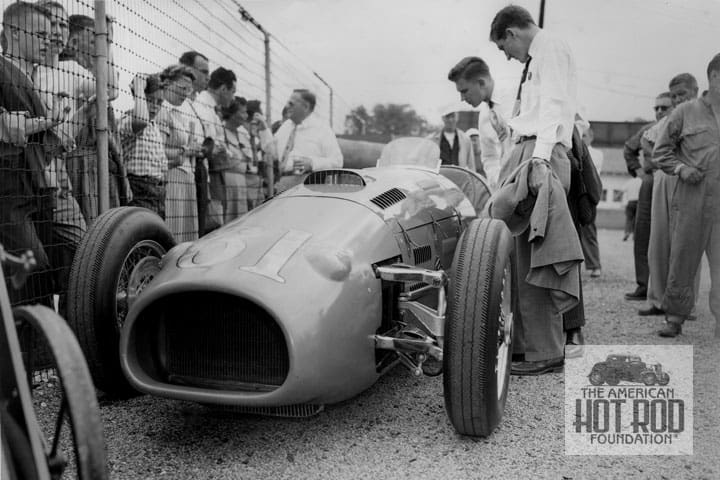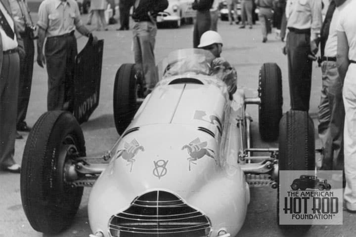 The boys at Cummins Engineering Company were gluttons for punishment when they decided to see what their Diesel engine would do at the Brickyard in 1950 (DBC_247). They hired Frank Kurtis to shoehorn one of their 401″ inline sixes’ into a new ride. Driver Jimmy Jackson could only manage a 129.208 mph qualifying speed, the slowest in the race, and had to start down in the 32nd position. In the race, he fared no better as the supercharger gave up after 52 laps for a 29th place finish. This time they said forget Daytona and took the car to Bonneville in late August, and in early September driver, Jackson set six U.S. and six international speed records. His fastest speed was 165.23 mph.