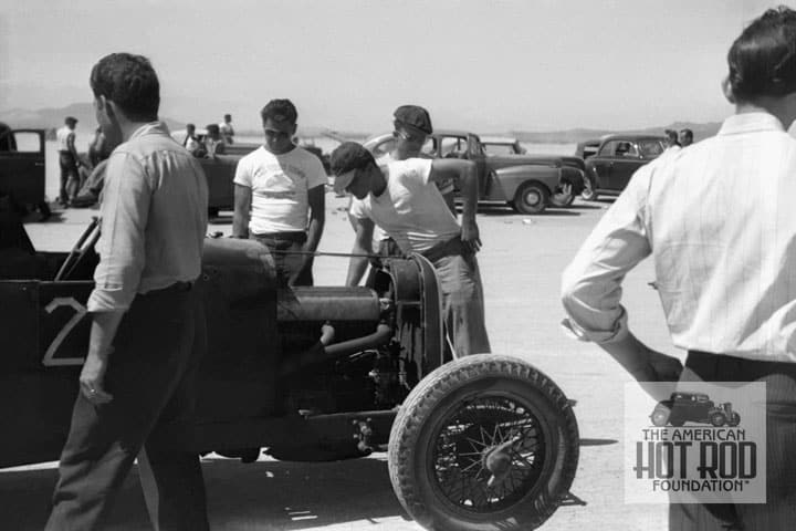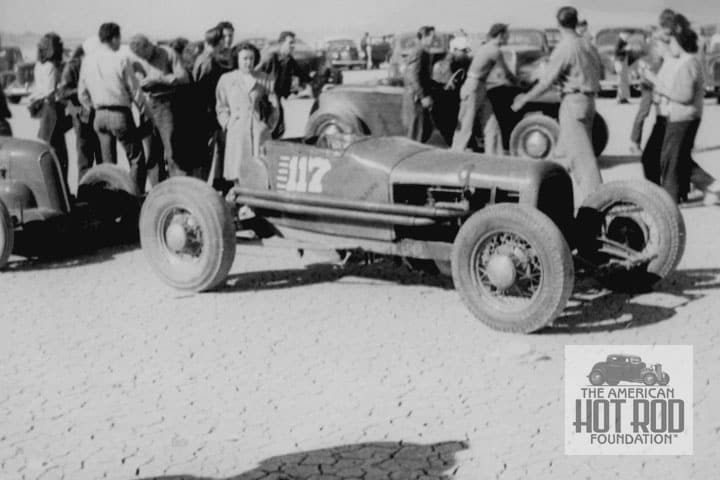 Next up we see Sidewinders Car Club member Major Gilbert who ran this slick-looking Deuce only once during the 1946 season (MKC_021). He’s seen at the June 2 meet where he turned 104.16 mph. At the time Major was the one who stamped all the Timing Tags for the S.C.T.A.