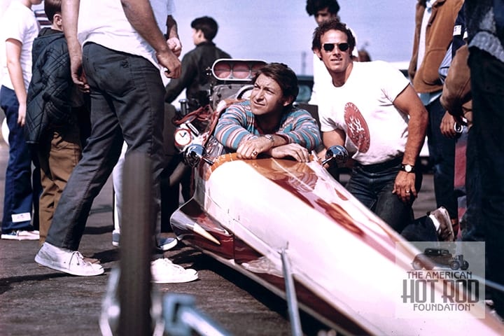 Hibler’s easygoing-yet-determined personality earned initiation into a prestigious L.A. car club. His skill at the wheel of the Ghost Riders’ ’34 Ford altered coupe led to ever-quicker rides in club members’ cars and friends’ rails. That experience culminated in a part-time career driving other people’s underfunded, often-explosive Top Fuel Dragsters. Everyone knew that if Harry was at the track, so were his helmet and firesuit.