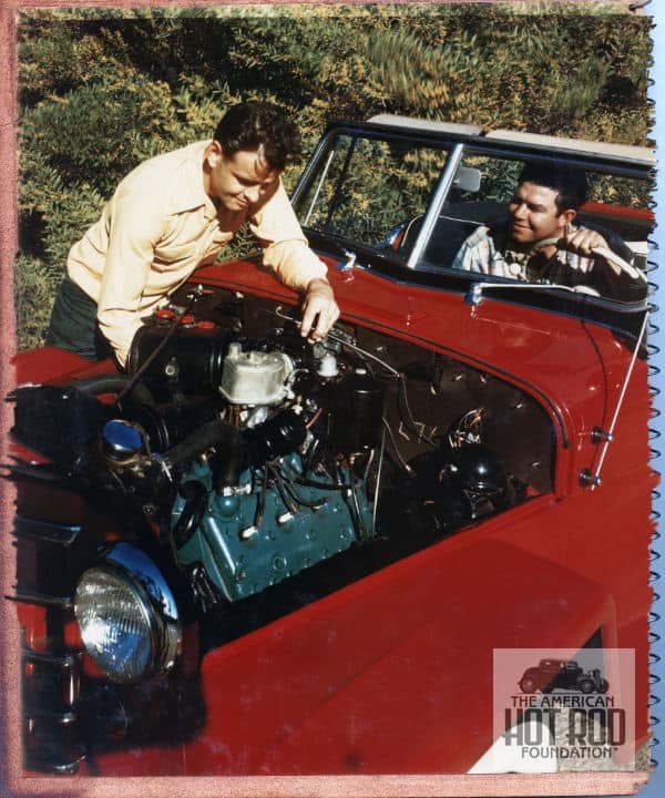 Last but not least is another lost to the world hot rod scheme that didn’t make it. How about an engine swap kit from M-J Conversions in 1953. The folks involved were Marvin Graham, Maynard Parker, and our own Julian Doty. They were taking Willy’s Station Wagon’s and Jeepster’s and dumping in Ford and Merc flatties. The attached shot is one from an 18 photo leather bound portfolio on how to do a conversion (DOT_961). Is that carb off a Lincoln? How many conversions did they do?