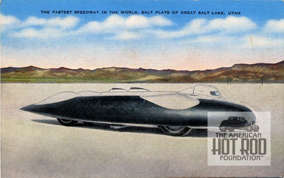 To go hand in hand with the Graphic we also dug out a postcard published by Horse Shoe Magazine Distributing Company out of Salt Lake City that shows the John Cobb’s Streamliner after he broke the World Land Speed Record on August 26, 1939. Mr. Cobb 2-wayed at an impressive 369.74 mph.