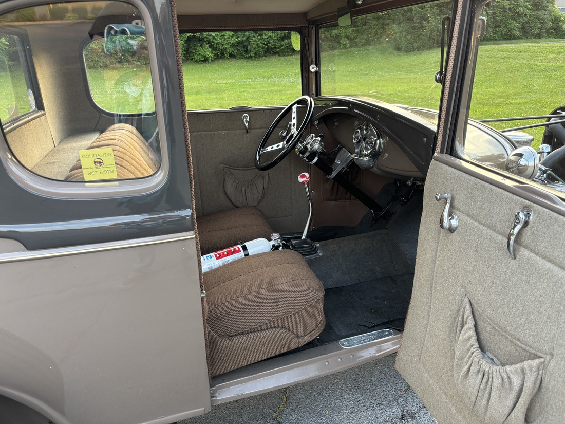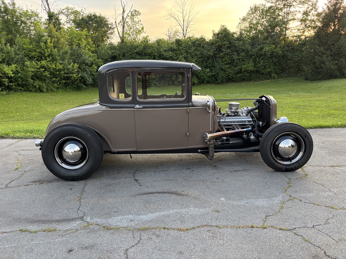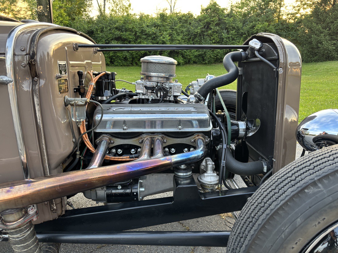The car started life as a well-known local stock restored Model A. In 2023 the coupe was in a collision taking it off the road for over a year. I acquired it through the local Model A Club and began to transition it to an early styled hot-rod. The motor is a true 327 L79 that has been rebuilt. The frame is a new chassis built by Commando Hot Rods and Riley Automotive. The interior remains stock with the exception of the shifter, tunnel and steering wheel along with Stewart Warner gauges. Wheels are 1940 ford and brakes are 40 Ford. The axle is a 34 dropped by Greg at Ansen’s.