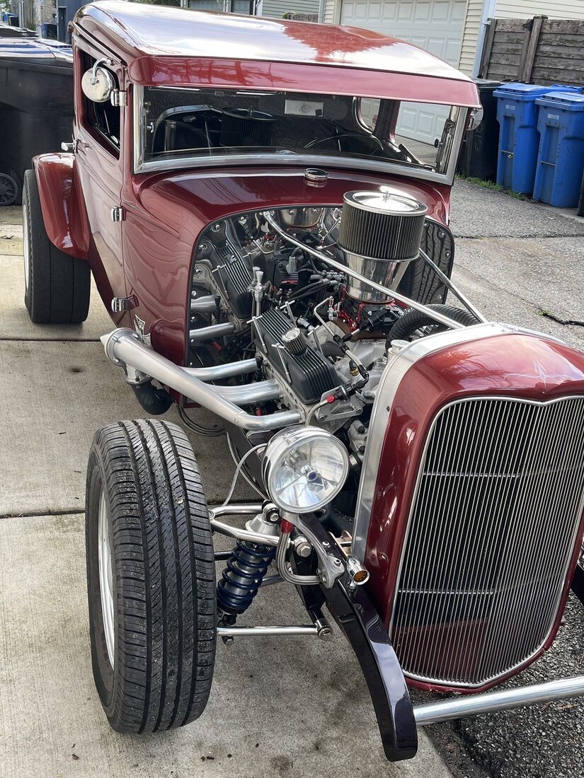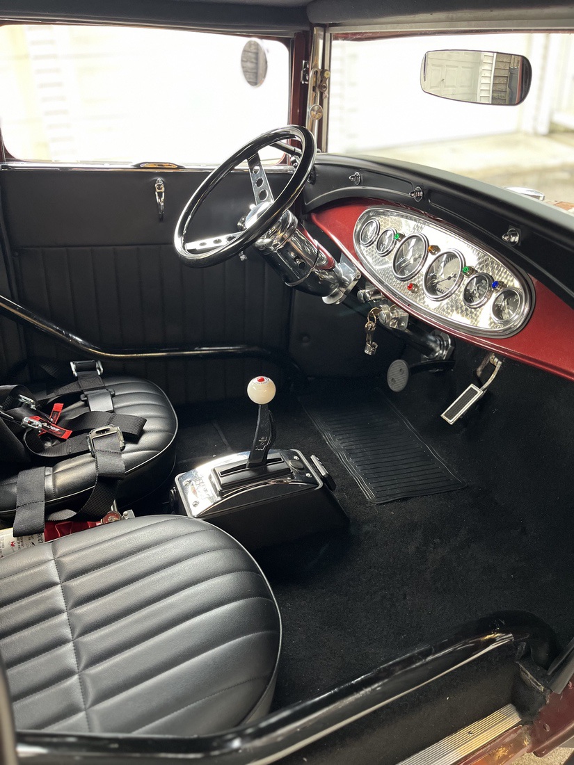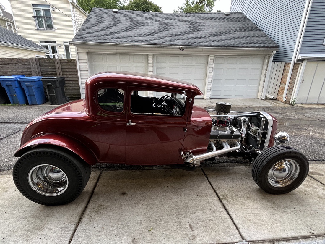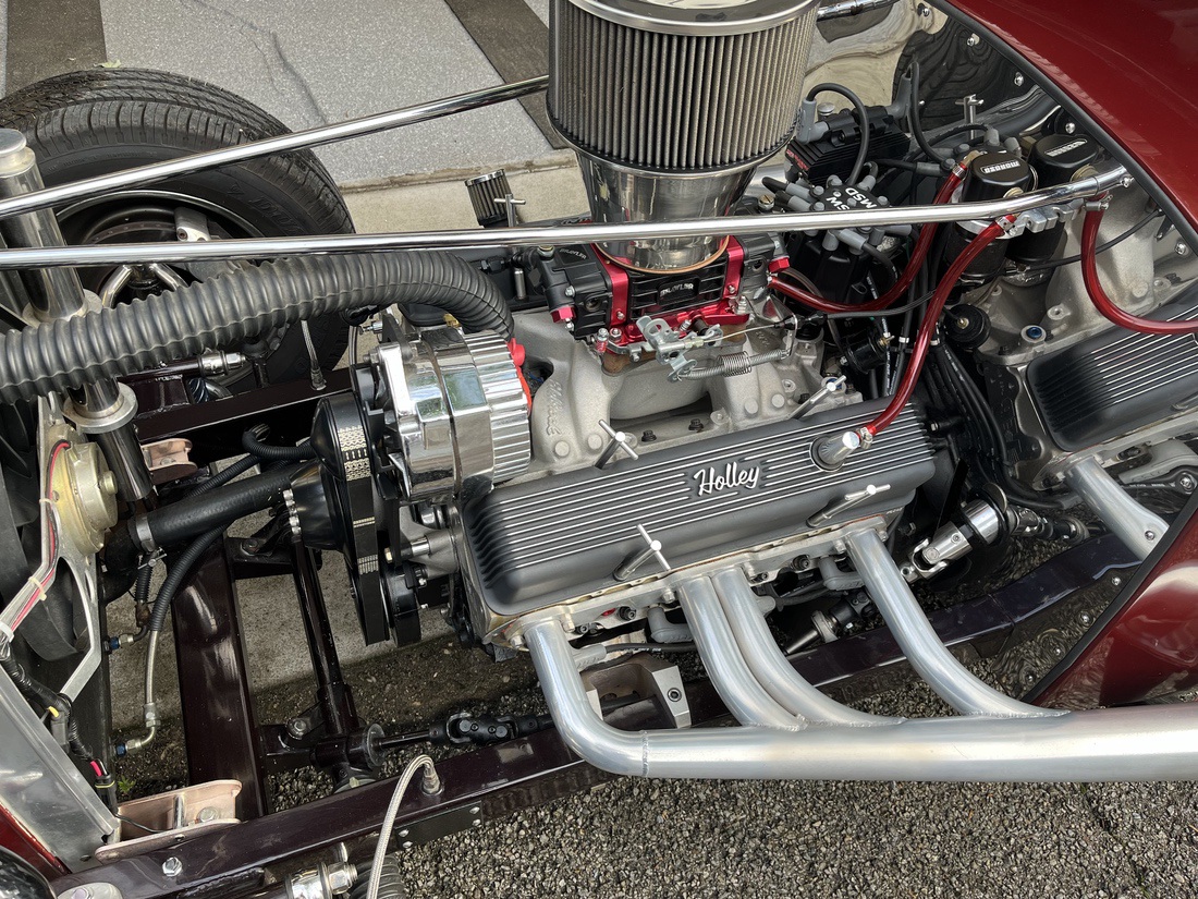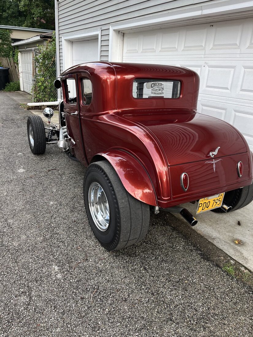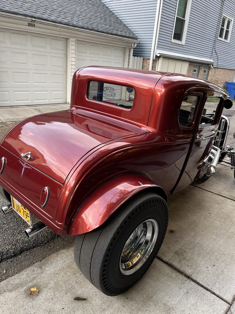 I purchased the car in 1975. Over the last 49 years I chopped and channeled it 3 inches built a new chassis with a height super ride. Independent front suspension. The engine is a 383 stroker with AFR Street eliminator aluminum heads the carb is a brawler 750 double pumper. The exhaust is a roadworks lakester header with cut outs and flow master mufflers. I put in a 32 dash with Stewart Warner gauges. My front tires P20 5 70 R 15 Dunlops and the rears are tall city 31 x 10.50 x 15 Chester slicks. I bought the car when I was 22. I am now 71 and I’m still driving it all around town.