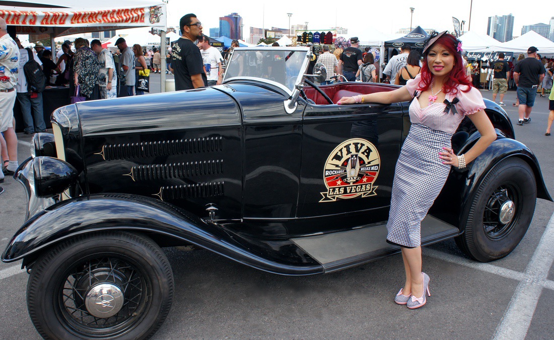 I bought this car from Tom Ingram, the organizer of the “Viva Las Vegas Rockabilly Weekend” in 2014. It had only been driven in Los Angeles and Las Vegas as the star of the show. This car had fenders and running boards, which I removed to make it a hi-boy. I also swapped the Mustang 2 wishbone front end for a chrome-plated rigid front end, and the tires for Excelsiors.