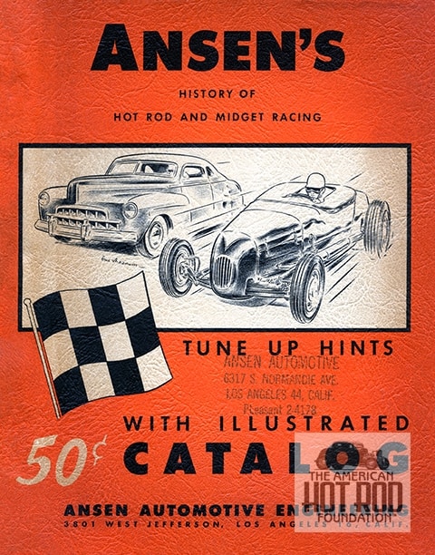 All too quickly, Senter Engineering was becoming a full fledged speed shop—Lou having realized that there was money to be made selling not only used but also new speed equipment. He also made side money street racing but his world was about to explode. Enter Jack Andrews who, like Lou, was a machinist with a lot of ideas. The pair formed Ansen Automotive Engineering, an amalgam of Andrews and Senter, and opened a new speed shop in a block shaped building at 6317 South Normandie, Los Angeles. They displayed at the very first HOT ROD Show at the Los Angeles Armory, January 1948, and their first ad appeared on page 34 of the second edition of HOT ROD Magazine, February 1948, saying: We Build Them! HOT RODS, Motors, Chassis, Machining, Distributors, Iskenderian Track Cams. They were also one of the first speed shops to enter the lucrative mail-order catalog business.