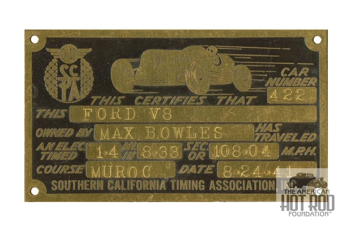 Talking about timing, besides the piece of paper taped on a competitors car his real prize was getting a brass timing tag. JMC_4475 shows Milers member Max Bowles’ August 24, 1941 Muroc timing tag with a speed of 108.04 mph. He ran a roadster fitted with a Ford V8.