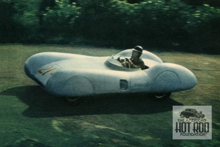 After being hooked on Salt Flat racing at an early age any vehicle that appeared to have a streamlined body was automatically on my list as a potential Bonneville Streamliner (JMC_4345). This cool Jesse Alexander shot from the March 1956 issue of Auto Age shows Edgar Barth at the Nurburgring on August 28, 1955, during round three of the German Sportscar Championship in a ride that met my Streamliner specifications. The car is the East Gew Nailheads under the hood. Way cool.