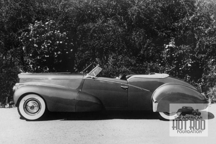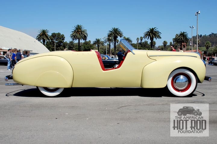 For those who couldn’t afford a real hi-end ride to start with, we present a more rodder-custom take on a 1940 Mercury Club Convertible. Coachcraft in Hollywood was started before WWII by former Darrin workers. They took one of 9,212 model 09A-76 Merc’s and basically used the fenders and some of the hood to create this stunning ride (JMC_4897). When this picture was taken at the Primer Nationals in ’09 it was owned by Derby Ahlstone of Ventura. To get the full story on the incredible ride, check out Hop Up number 9.