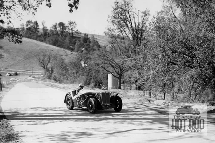 As a recap besides September, Ginther, Hill and Chuck Daigh all started as hot rodders and raced at Le Mans. Hill even won the race twice and was the first American to become a Formula 1 World Champion. The Grinders shot also features Don Cox who was a member of the first NHRA Safety Safari and whose photographs are part of the AHRF Collection. Bob Path was a second gen racer back then and moved tog in his hot rod. The car in the picture is Esquire Motors owner Bill Cramer’s M.G. TC. As of now, we know that Cramer had wizard Bill Stroppe drop a full tilt Ford V8-60 under the bonnet (that means hood in American). We also have a shot of the car at Carrell Speedway on February 25, 1951 with Ginther’s bud Phil Hill in it. Now comes our problem. The track looks like Paramount Ranch that wasn’t around this early. Richie’s collection shots only feature him and the cars he drove. As of now, we can only assume it’s Ginther behind the wheel of the Cramer car but where and when.