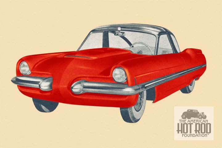 In the “Cars” magazine above we ran across an illustrsis’ for Doc Boycation of a vehicle called the Ford XL-500 (JMC_4631). A little digging revealed that it wasn’t really a Ford but was actually a Lincoln-Mercury show car that was originally named the Phantom. It was also the first post-WWII show car to carry the Lincoln name. The all fiberglass car was painted Scarlet Red and built on a 123″ Lincoln chassis and was basically a shell as the doors, hood, etc were just grooves carved in the body. To get in the thing you had to climb through the window. The car bristled with styling ideas that made their way onto many Ford built automobiles over the next half-decade like the Merc lids over the headlights and the Victoria chrome strip over the roof not to mention push buttons in the center of the steering wheel that made it to the Edsel. We added some color to simulate the way it was originally painted and why it was a real head-turner. For the full story on the car, all you have to do is find a copy of “Ford Design Department Concept and Show Cars 1932-196ow Cars 1932-196932-1961” that was published back in 1999. Good Luck.